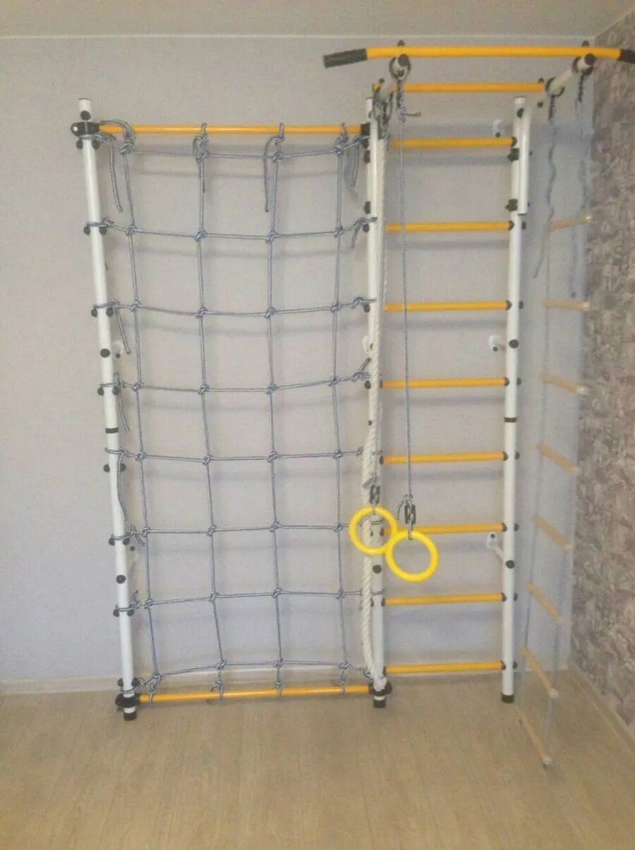СохранитьШведская стенка «Пристенная с сеткой для лазания», цвет Бело-желтый интересное: