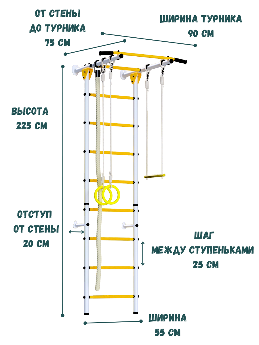 Шведская стенка Kampfer Union Ceiling (№1 Натуральный Стандарт белый турник)