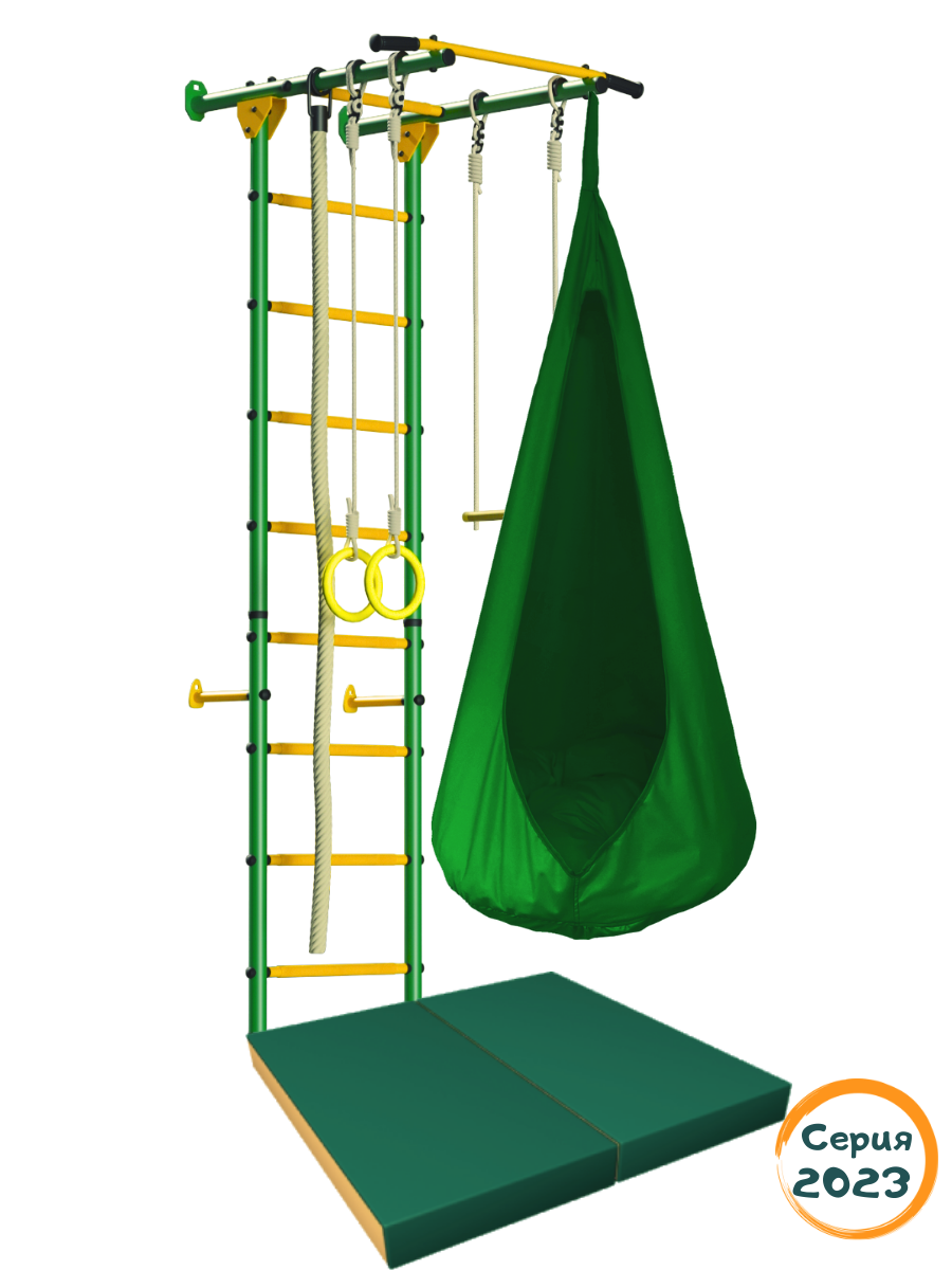 Комплект "Юный Атлет Пристенный Лайт" с матом 1х1 и гамаком, цвет Зелено-желтый