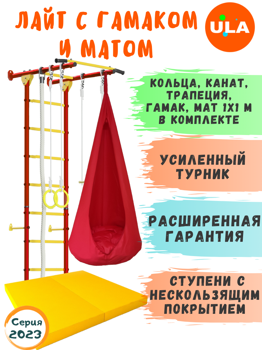 Комплект "Юный Атлет Пристенный Лайт" с матом 1х1 и гамаком, цвет Красно-желтый