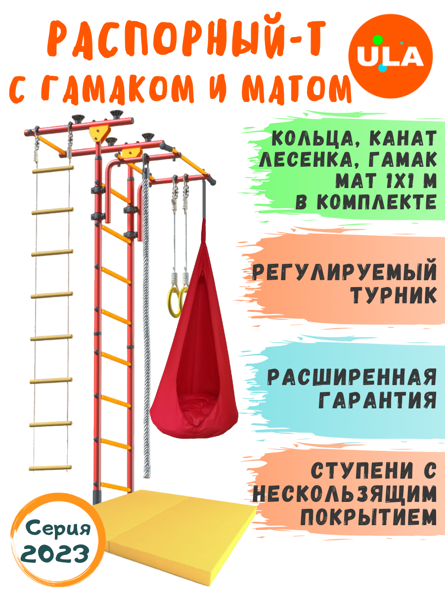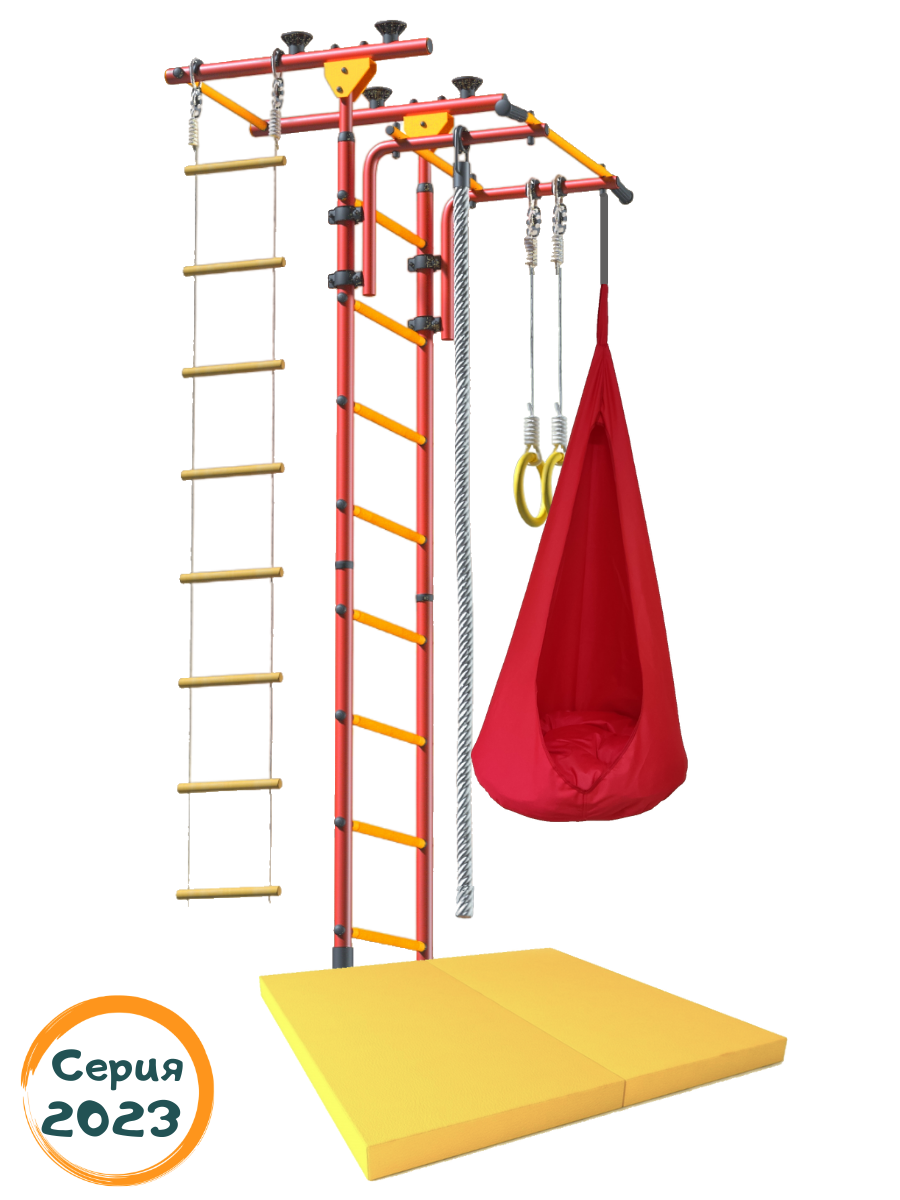 Юный Атлет Пол-Потолок - Т с матом 1х1 м и гамаком, цвет Красно-Желтый