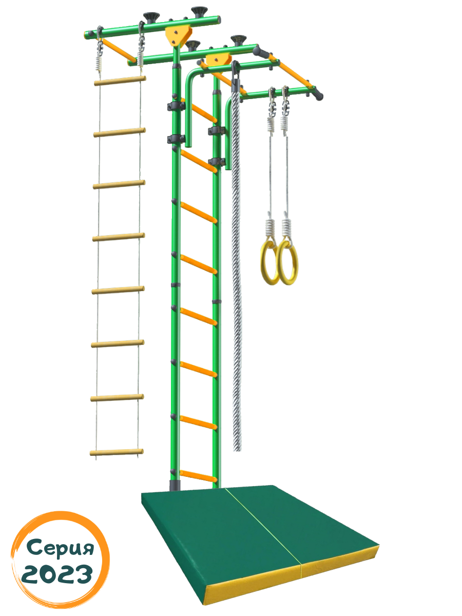 | Комплектация | веревочная лестница / гимнастические кольца / канат / мат / турник |