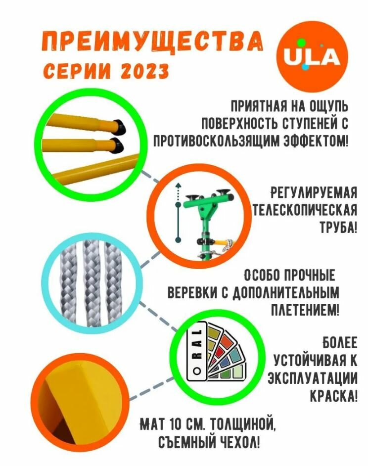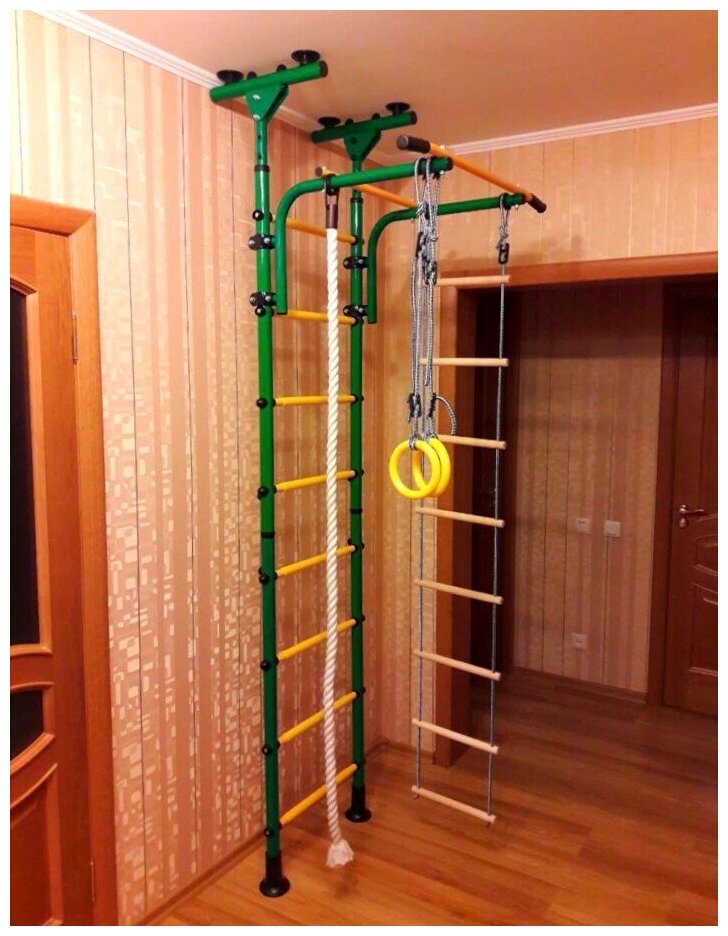 | Комплектация | веревочная лестница / гимнастические кольца / канат / мат / турник |