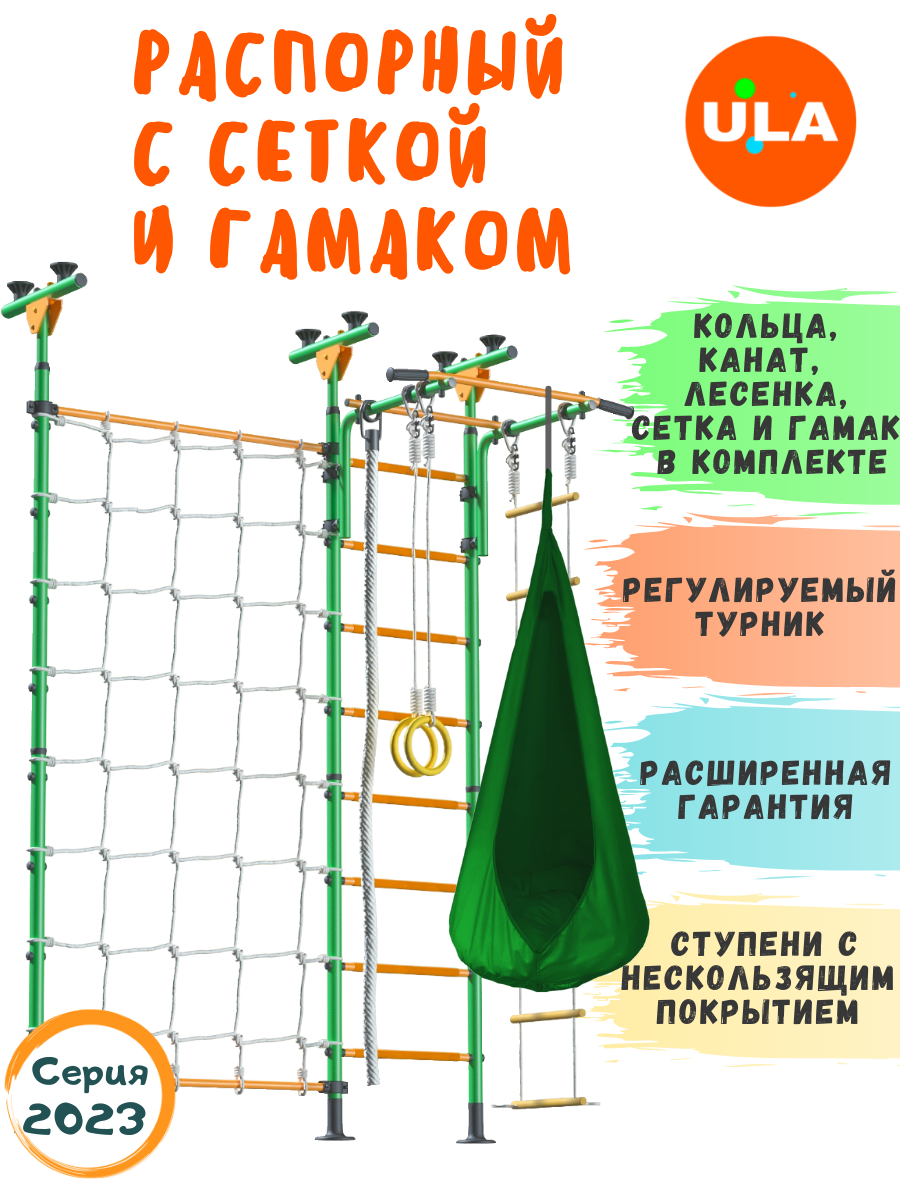 Юный Атлет Пол-потолок с сеткой и гамаком, цвет Зелено-Желтый