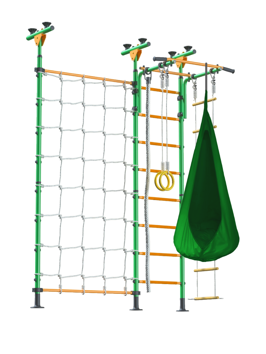 | Комплектация | веревочная лестница / гамак / гимнастические кольца / канат / сетка для лазания / турник |