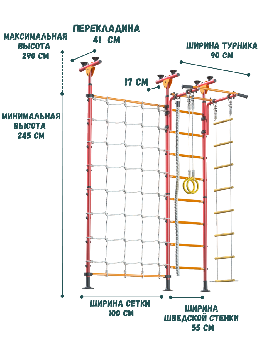 Юный Атлет Пол - потолок с сеткой и гамаком, цвет Красно-Желтый
