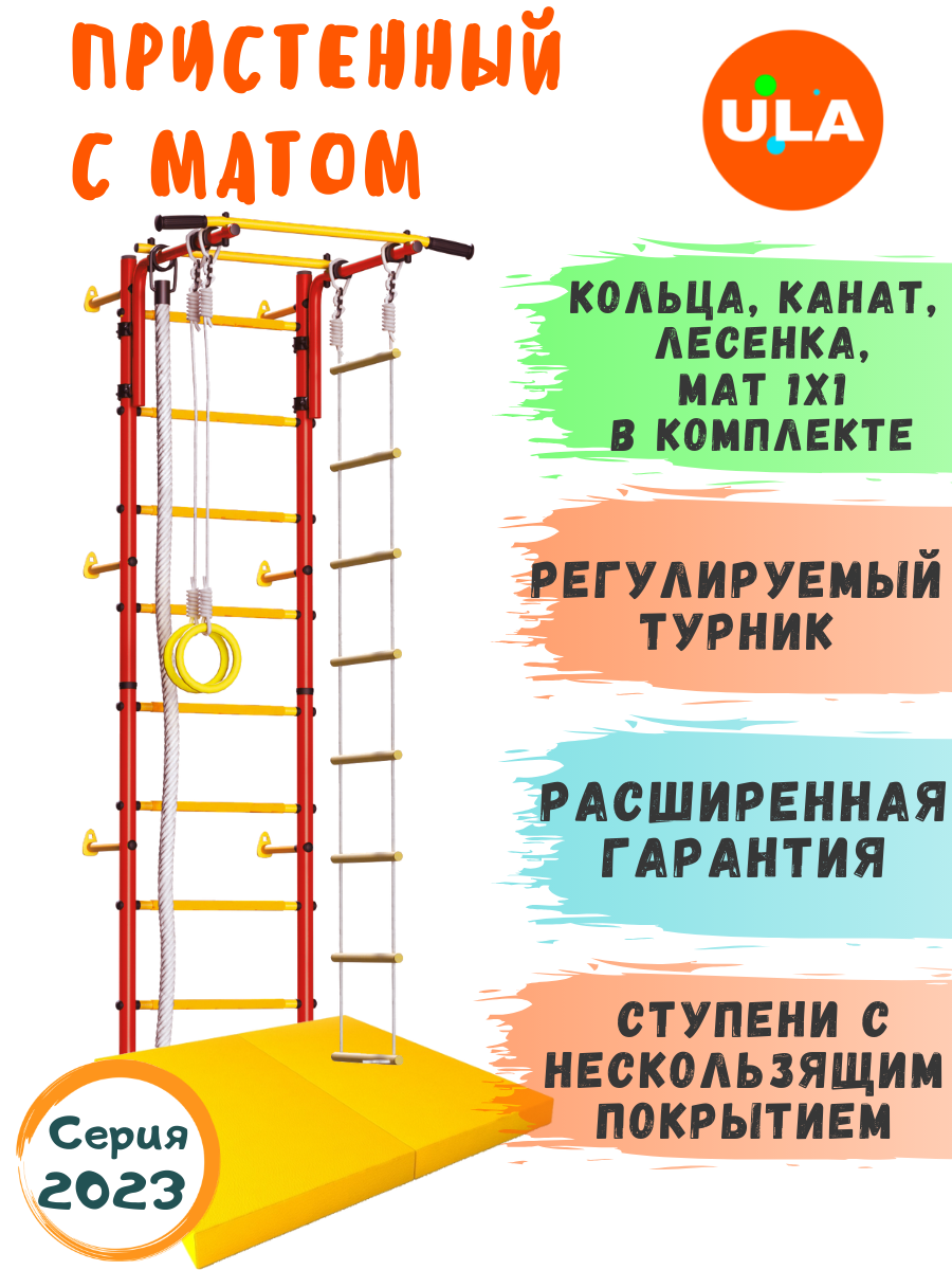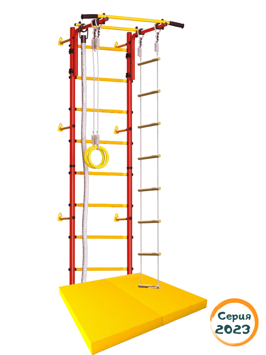 Комплект: Юный Атлет пристенный, цвет Красно-желтый, мат 100х100х 10 см Желтый