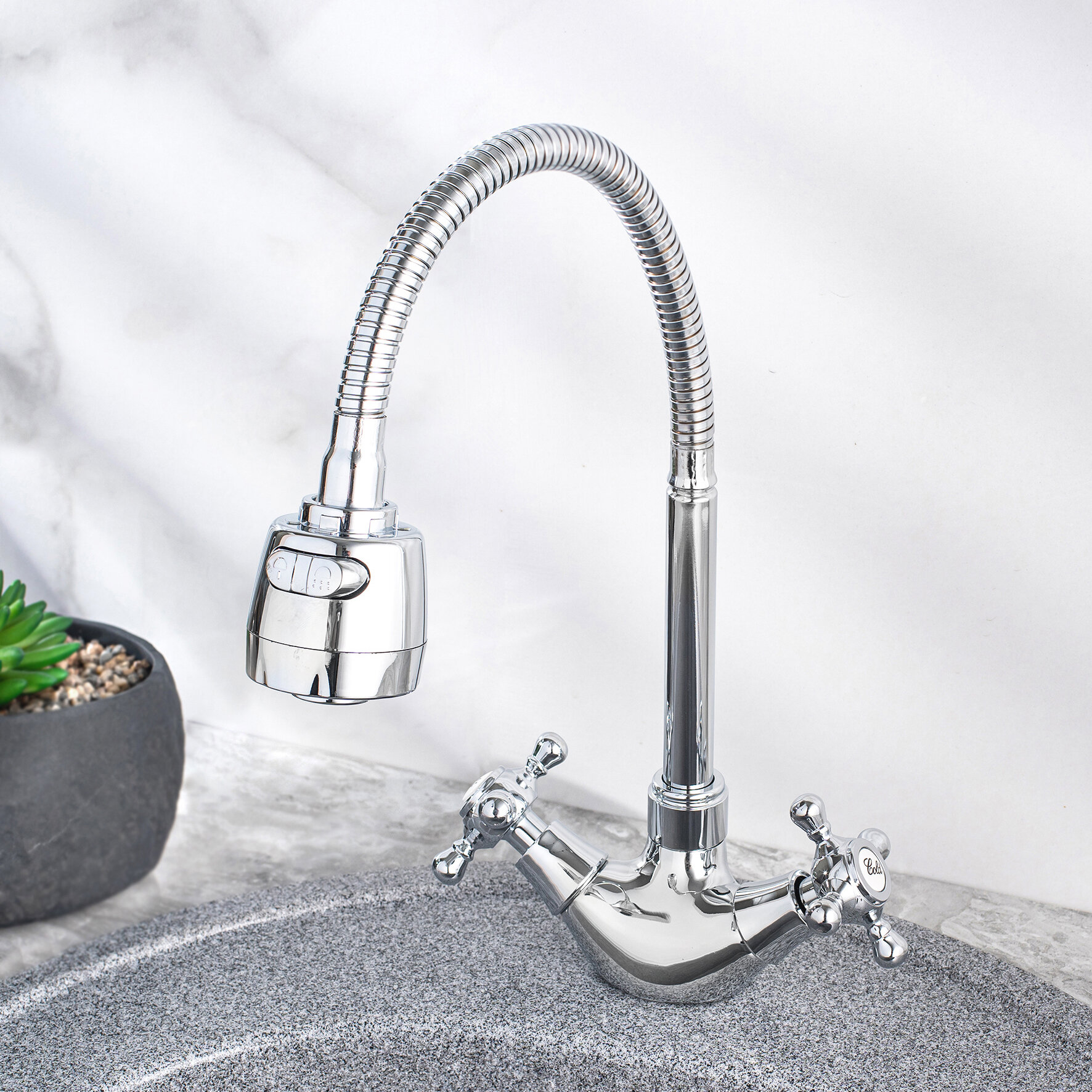 Смеситель для кухни, РМС, гибк излив, с кран-буксой, хром, SL65-279F