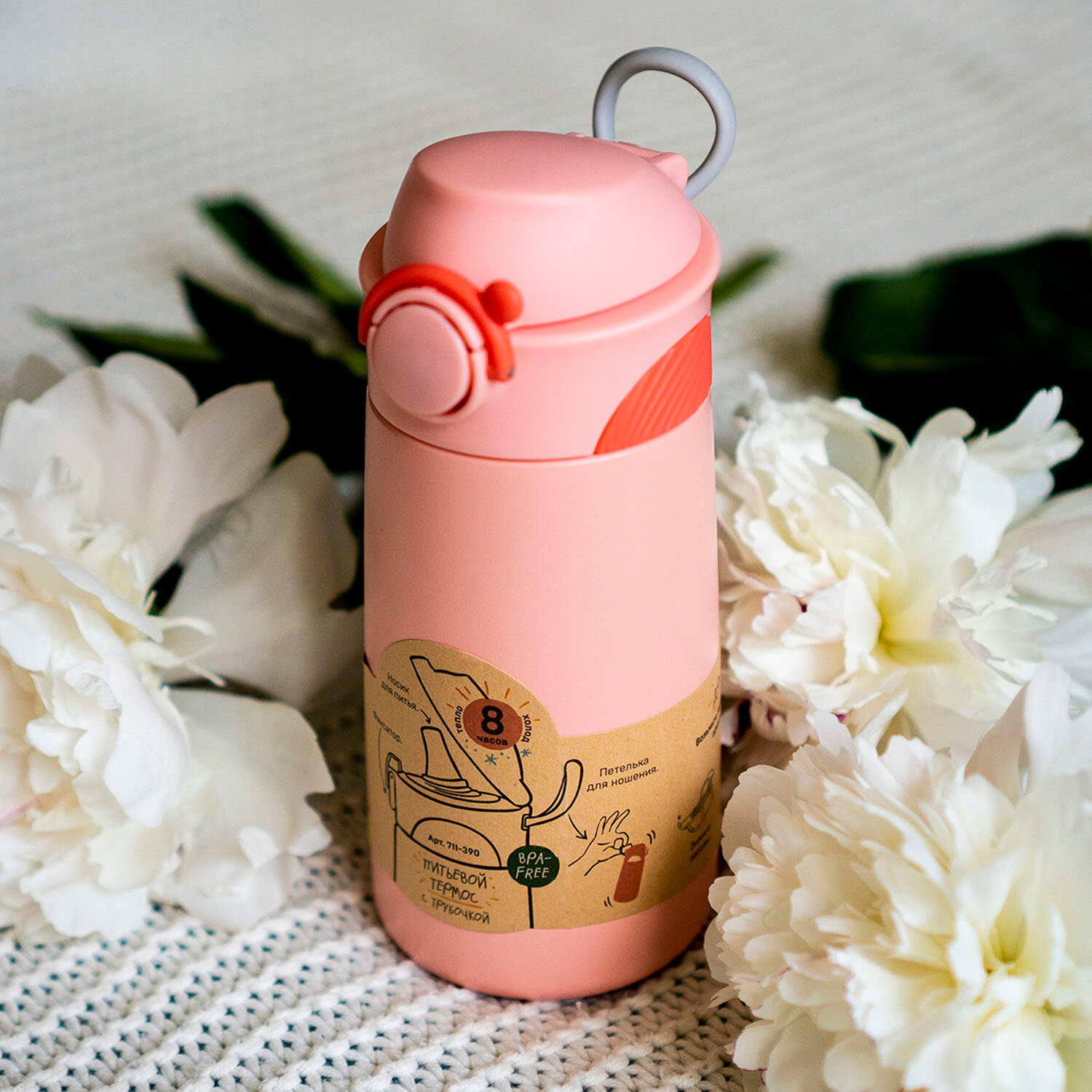 ARK-711-390-2 персиковый Термос детский питьевой, бытовой, вакуумный (для напитков), тм Арктика, 390 мл