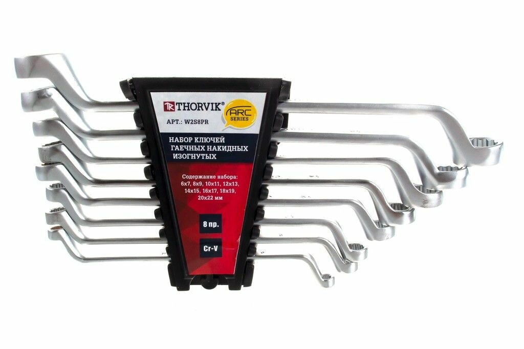Набор гаечных накидных изогнутых ключей Thorvik W2S8PR серии ARC, 6-22 мм, 8 предметов