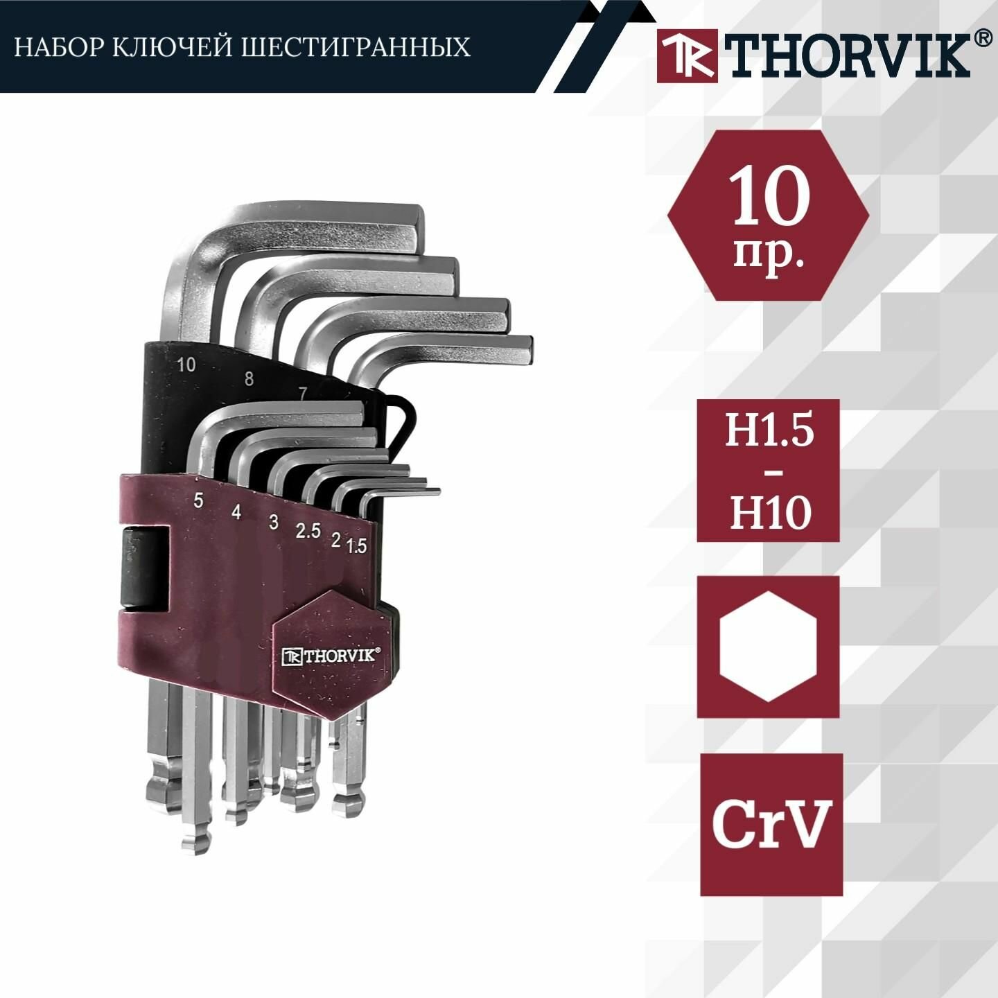 Набор имбусовых ключей шестигранных Thorvik HKSB10S 10 шт, 1,5-10 мм