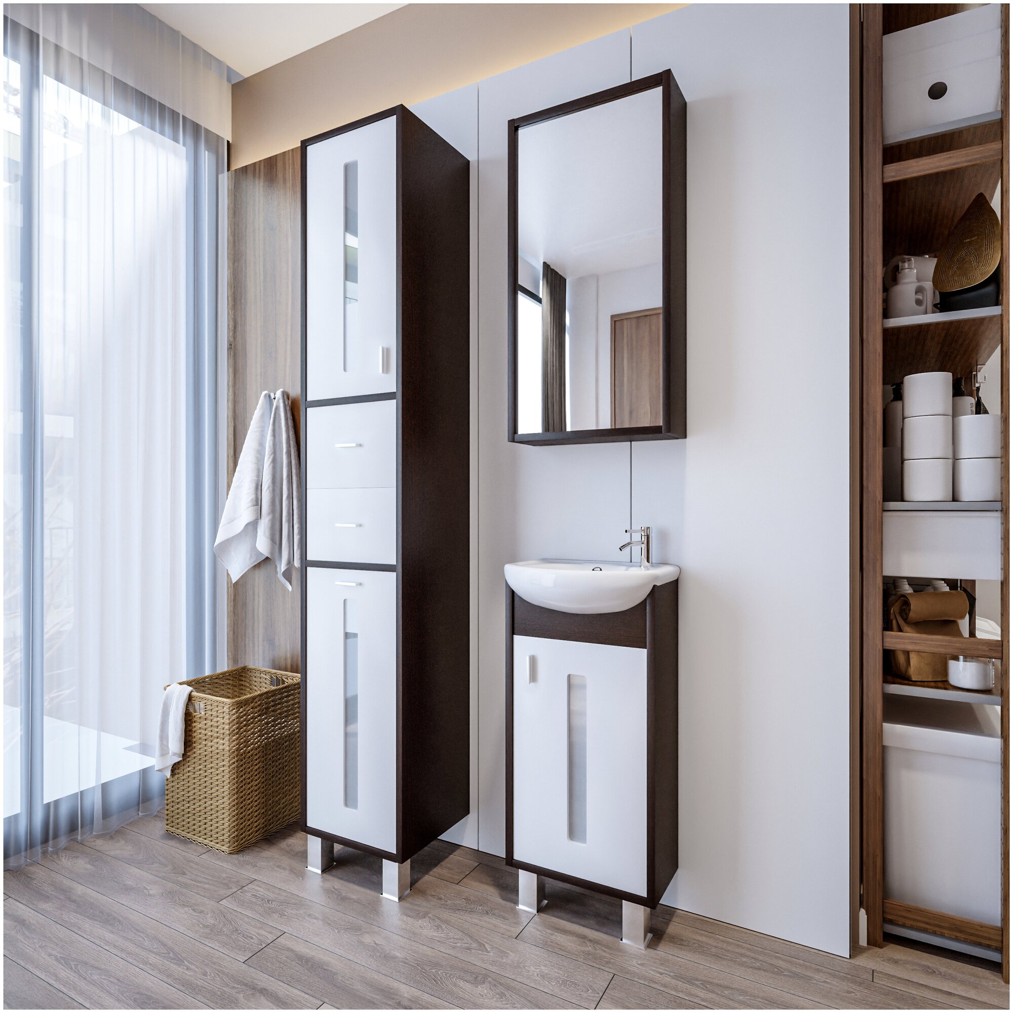 Тумба с раковиной для ванной Бали 40 Венге / белый глянец Умывальник Сантек "Азов" 40 см интересное: