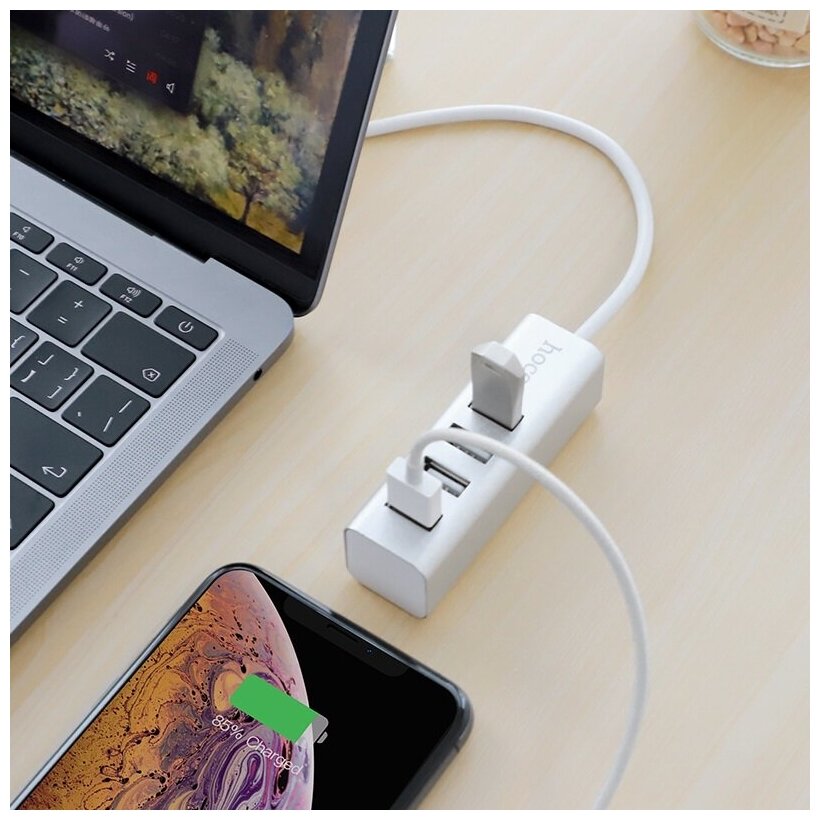 Переходник HOCO HB1, Разветвитель, USB - 4USB, 0.8 м, тусклый, (USB 2:0 - 480 Мбит/с)