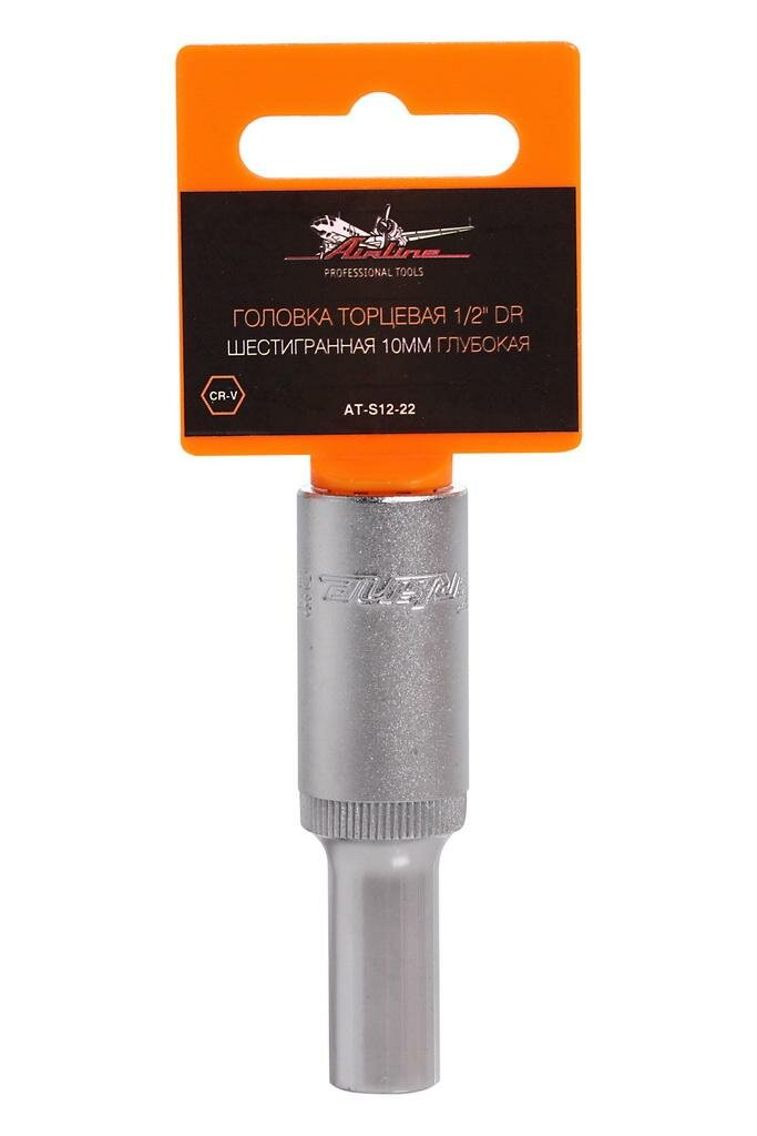 AIRLINE ATS1222 Головка торцевая 1/2 DR шестигранная 10мм глубокая в пакете (AT-S12-22)