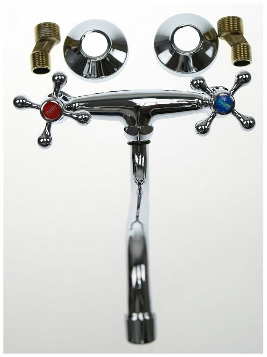 Potato Смеситель для мойки двуруч. настенный c поворотным трубчатым изливом P4665