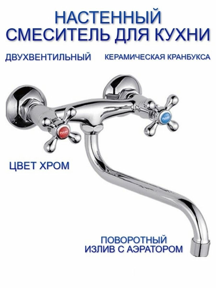 СохранитьСмеситель д/кухни, 2-ручк, керам к/б, хром, круглый излив, к стене, Potato (Китай), P4665 интересное: