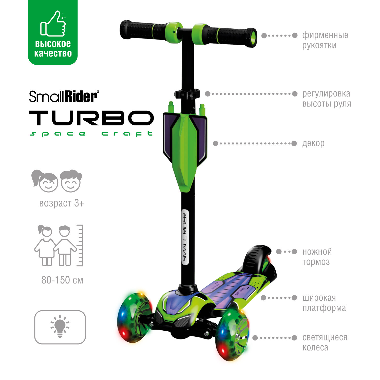 Самокат SMALL RIDER Turbo Spacecraft 3, детский, 3-колесный, 120мм, 110мм, зеленый [mega042]