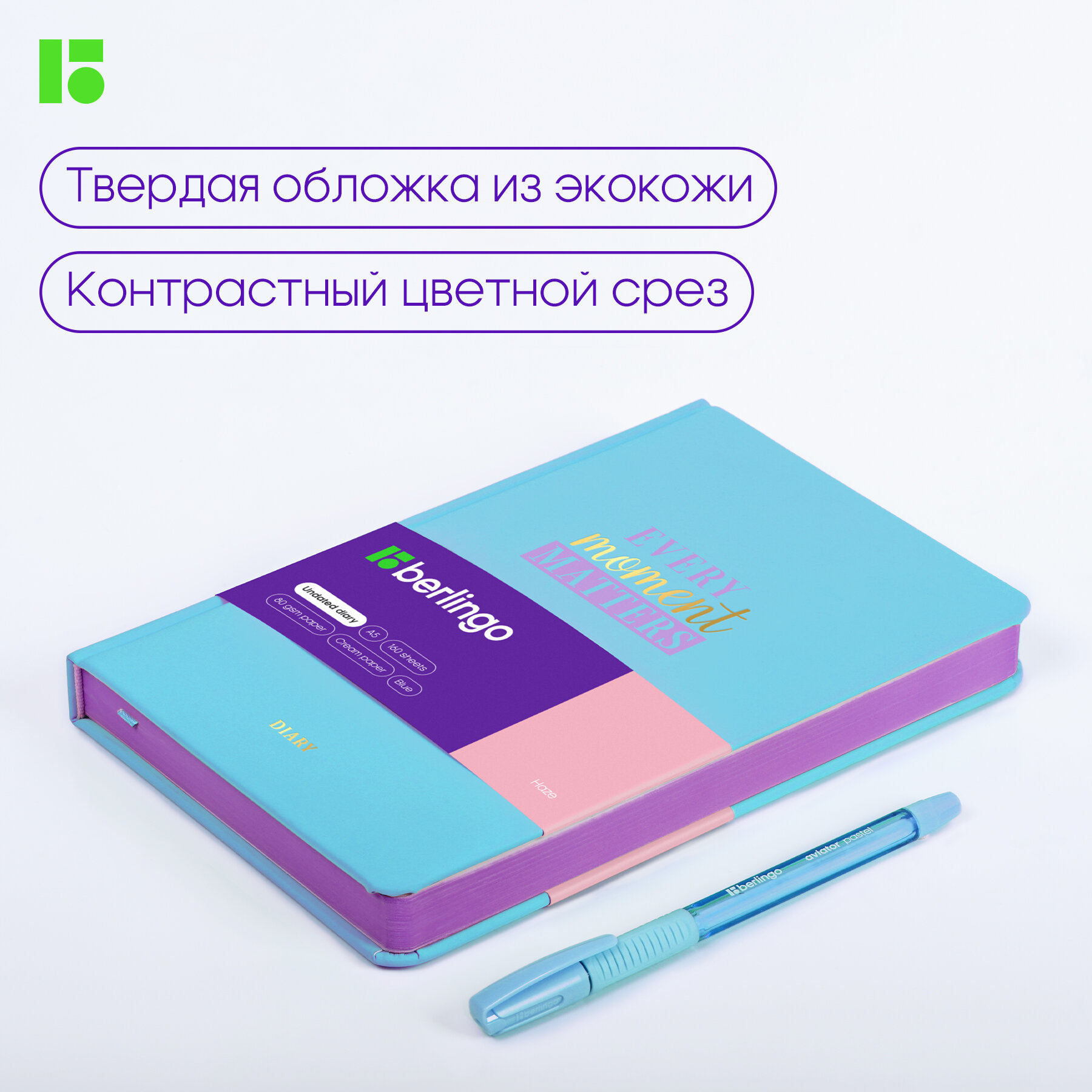Ежедневник Berlingo Haze недатированный на 2022-2023 год, искусственная кожа, А5, 160 листов, сиреневый, цвет бумаги тонированный