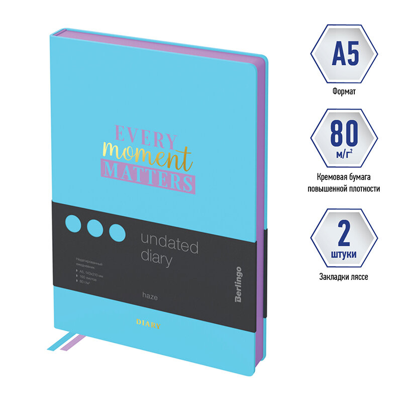 Ежедневник Berlingo Haze недатированный на 2022-2023 год, искусственная кожа, А5, 160 листов, голубой, цвет бумаги тонированный