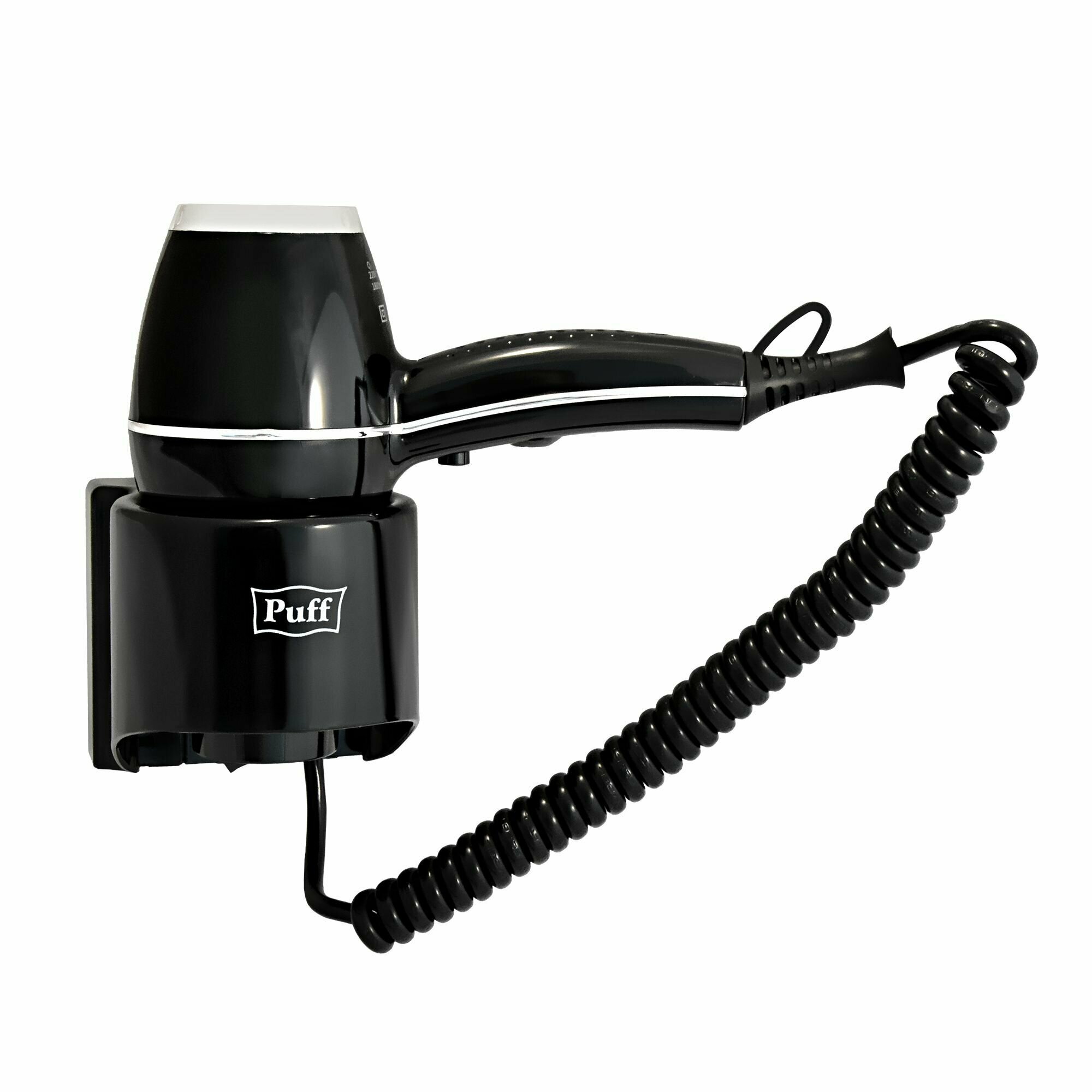 Фен для волос настенный с держателем, черный мощность 1800 Вт. Puff-1800BI с холодным воздухом Арт:0405.012