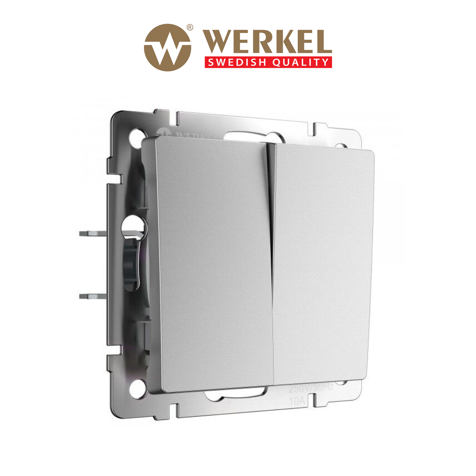 Выключатель двухклавишный без рамки Werkel серебряный W1123008