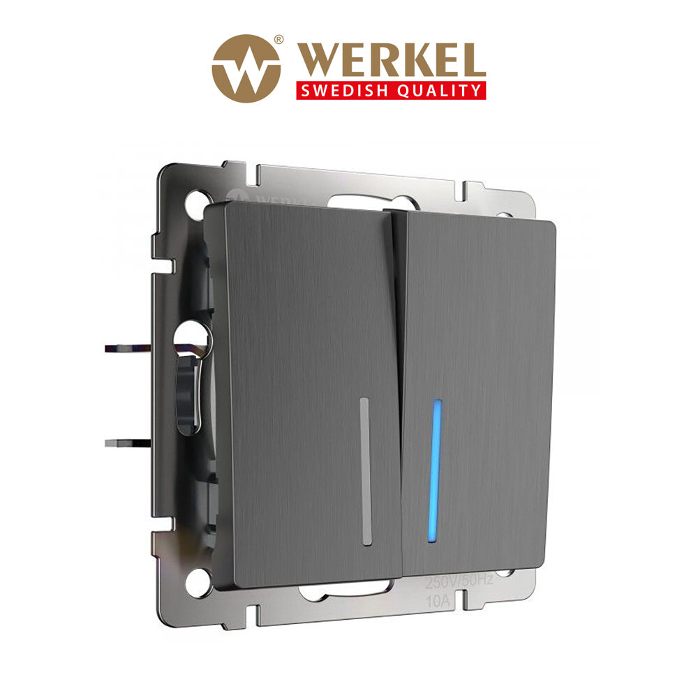 Проходной двухклавишный выключатель/переключатель с подсветкой Werkel W1122164 графит матовый IP20