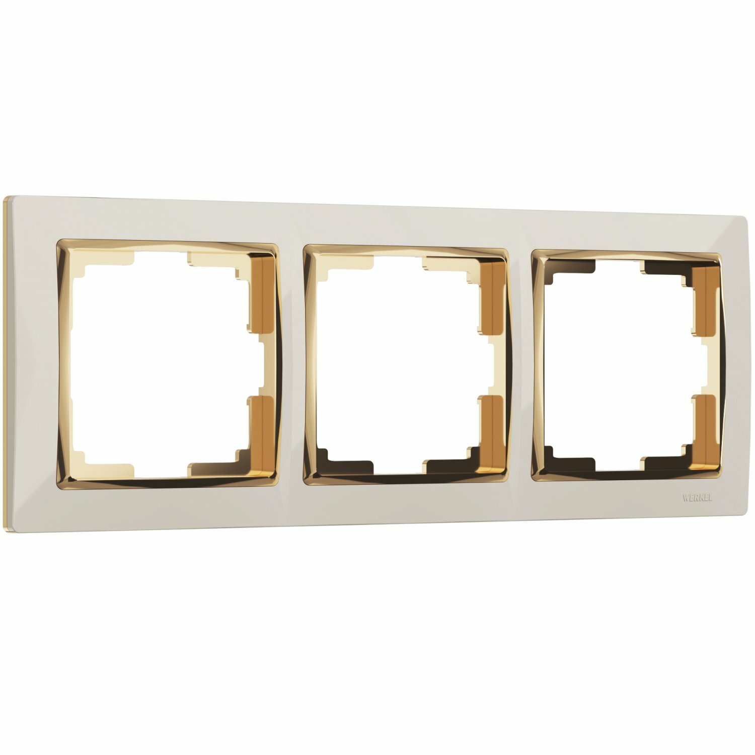 Рамка из пластика на 3 поста Werkel Snabb W0031932, цвет слоновая кость / золото