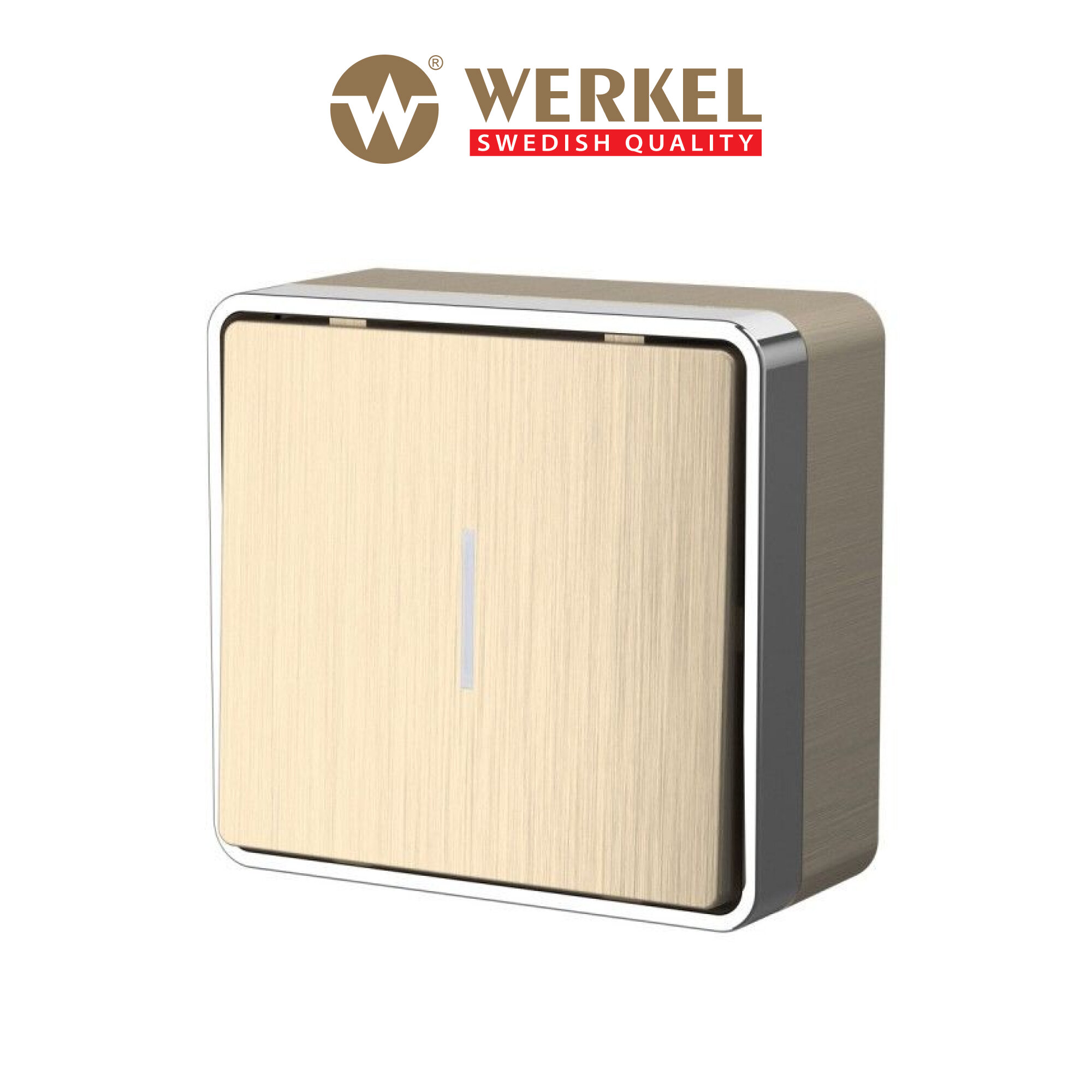 Купить Накладной выключатель одноклавишный с подсветкой Werkel Gallant W5010110 шампань рифленый IP20