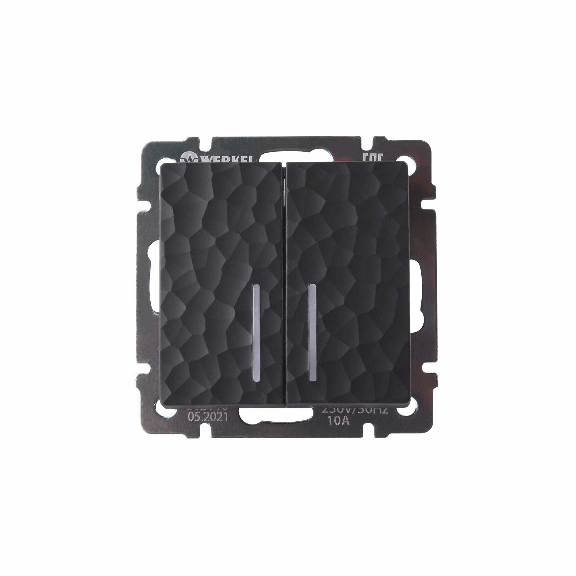 W1220108/ Werkel Выключатель двухклавишный с подсветкой (hammer черный) Веркель