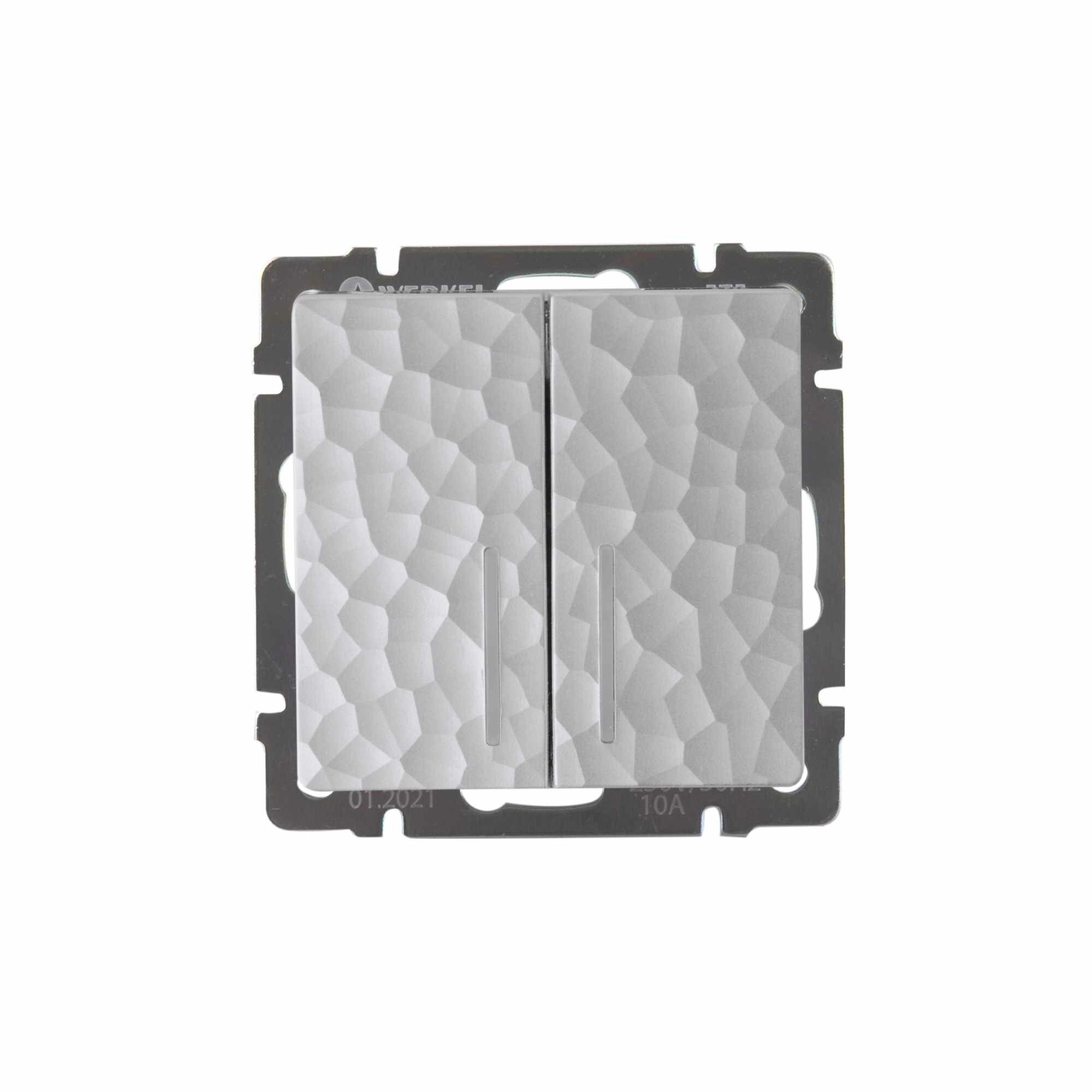 Двухклавишный выключатель WERKEL W1120109 с подсветкой серебряный рифленый a051356