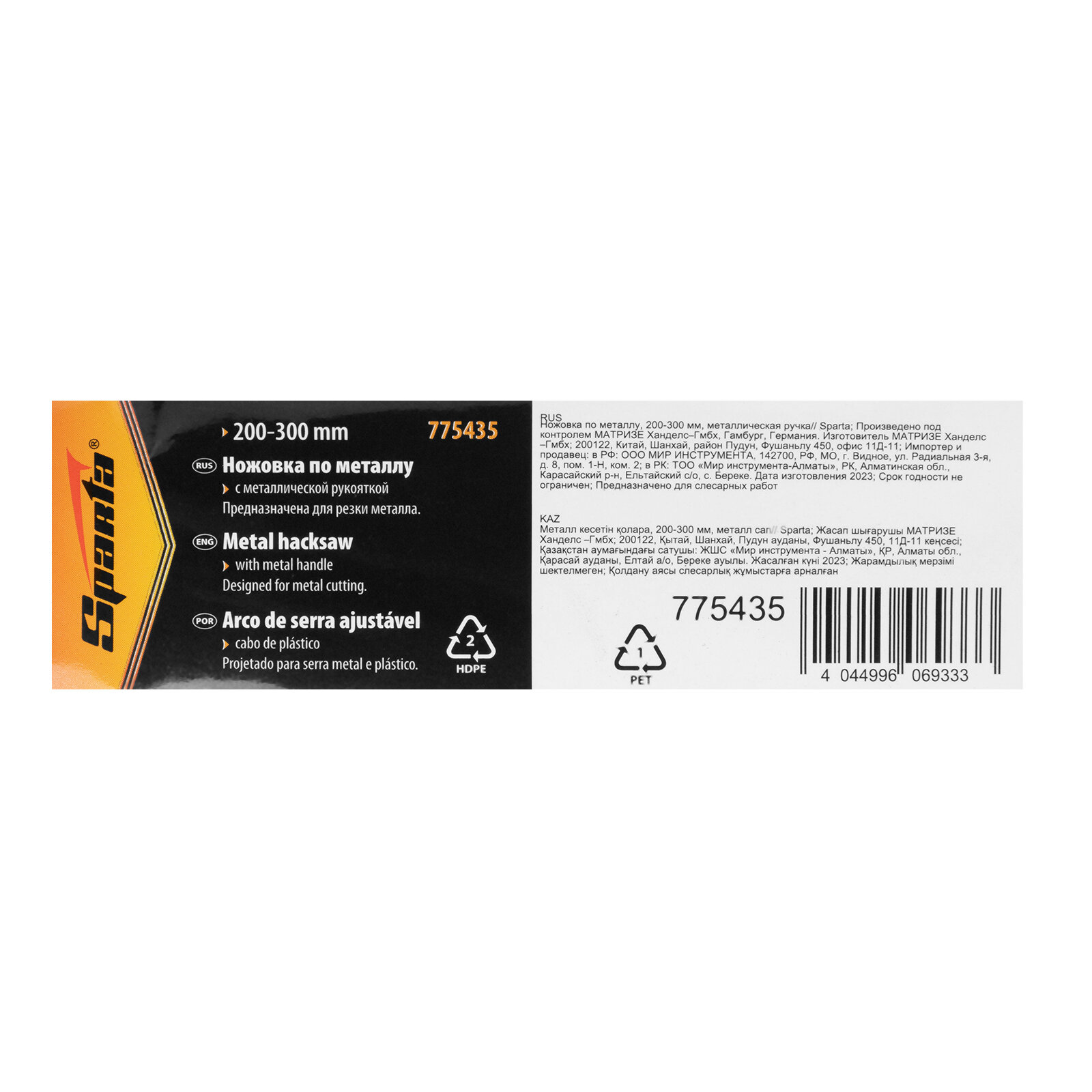 SPARTA Ножовка по металлу, 200-300 мм, металлическая ручка Sparta, ( 775435 )
