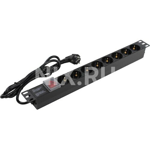 Блок розеток горизонтальный ExeGate ServerPro PDU-19H802 Al-8S-EU1.8CU-SW (19", 1U, Алюминий, 8 Schuko, кабель с евровилкой VDE-250V-16A-3*1.5mm2, медь, 1.8 метра, выкл. с подсветкой, черный, RTL) EX280841RUS