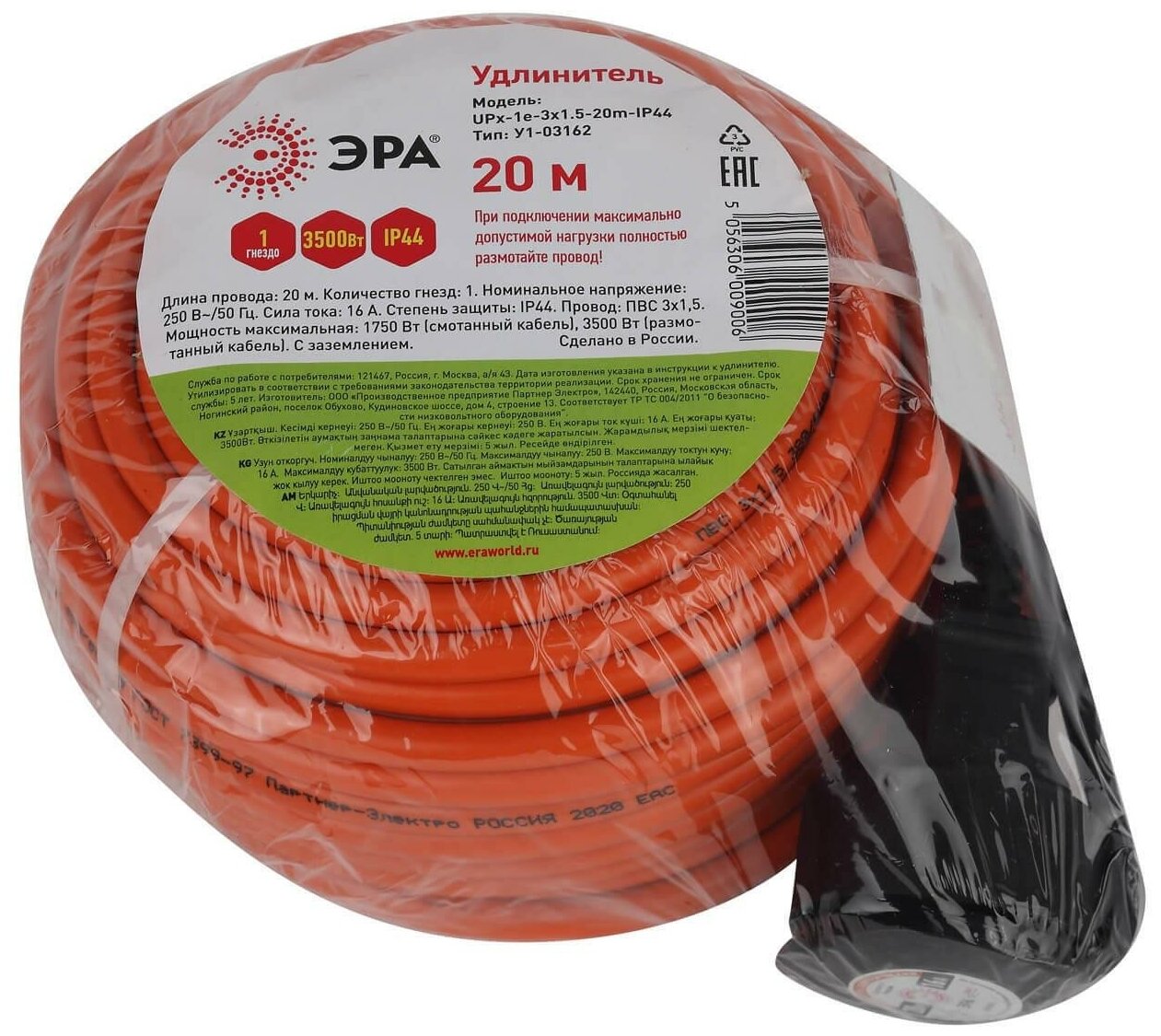 ЭРА Удлинитель силовой ЭРА UPx-1e-3x1.5-20m-IP44 Б0046816