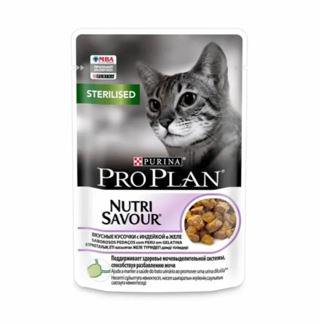 Влажный корм для стерилизованных кошек Pro Plan Nutrisavour , с индейкой 26 шт. х 85 г (кусочки в желе)