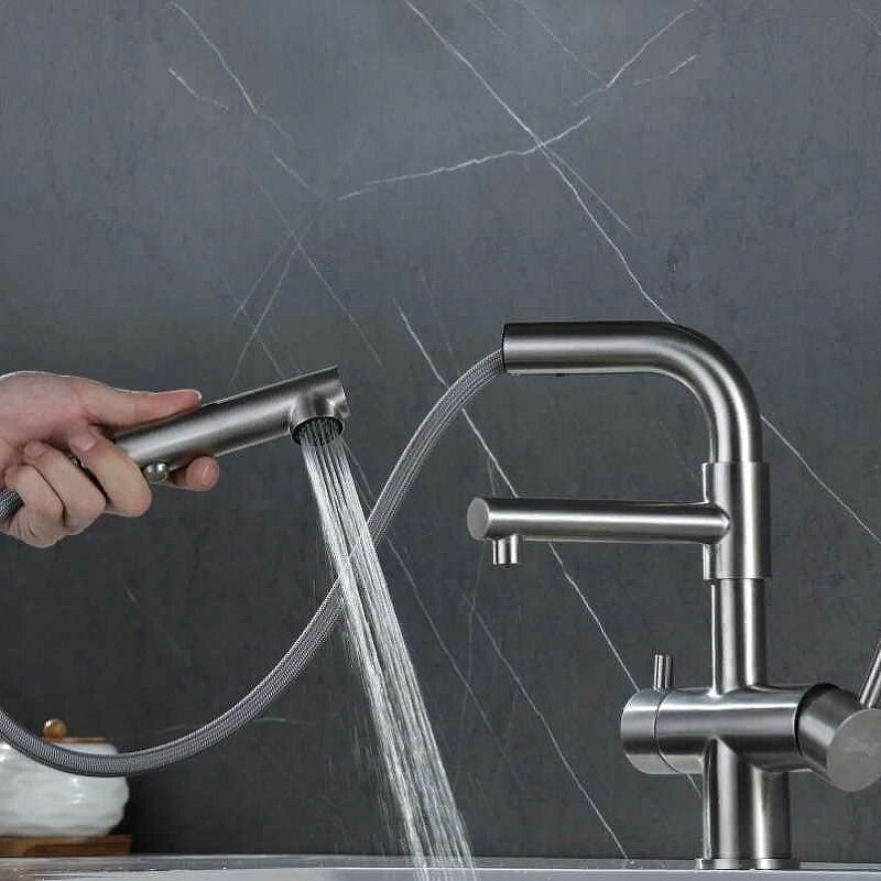 СохранитьСмеситель для кухни ZorG однорычажный под фильтр с вытяжной лейкой SZR-3216 нержавеющая сталь, струя-душ интересное: