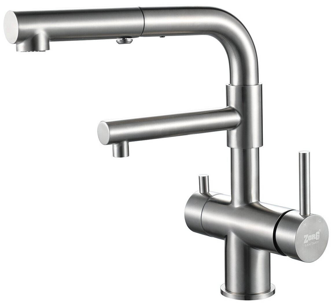 Купить Смеситель для кухни ZorG однорычажный под фильтр с вытяжной лейкой SZR-3216 нержавеющая сталь, струя-душ