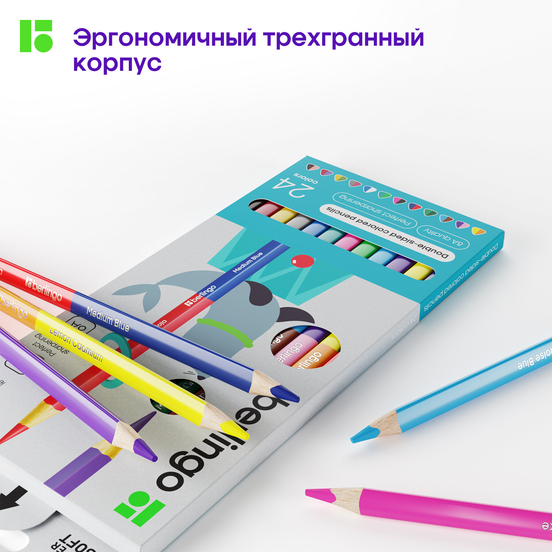 Купить Цветные карандаши для школы 24 цвета, двусторонние трехгранные / Набор цветных карандашей для рисования школьный Berlingo "SuperSoft. Duo"