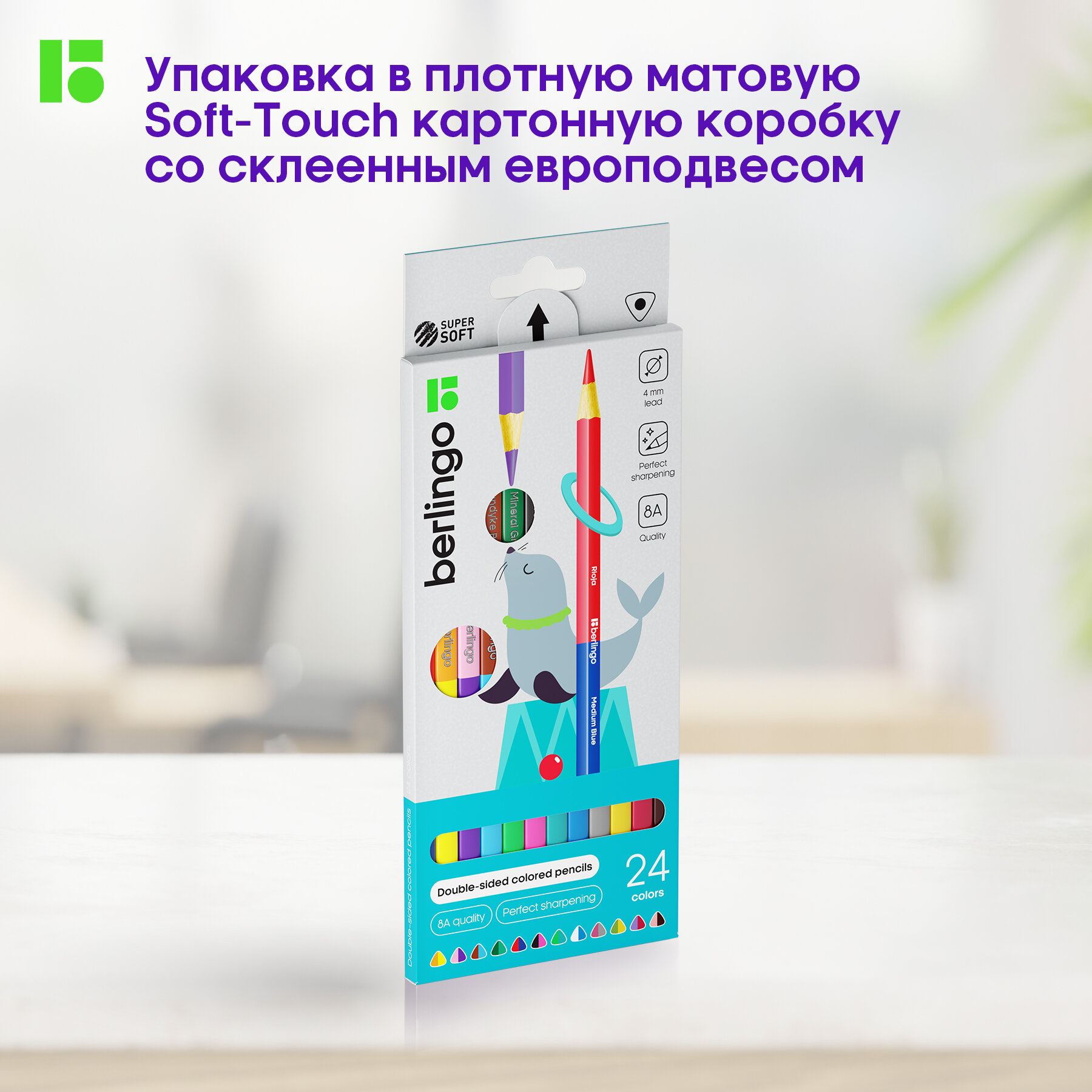 Карандаши цветные двусторонние Berlingo "SuperSoft. Duo", 24цв., 12шт., трехгр., заточ., европодвес