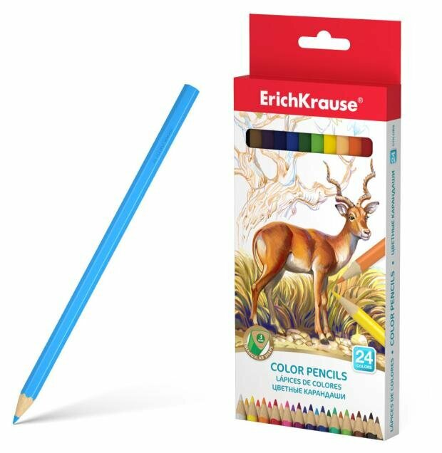 Цветные карандаши деревянные ErichKrause трехгранные, грифель 3 мм, 24 цвета 49888