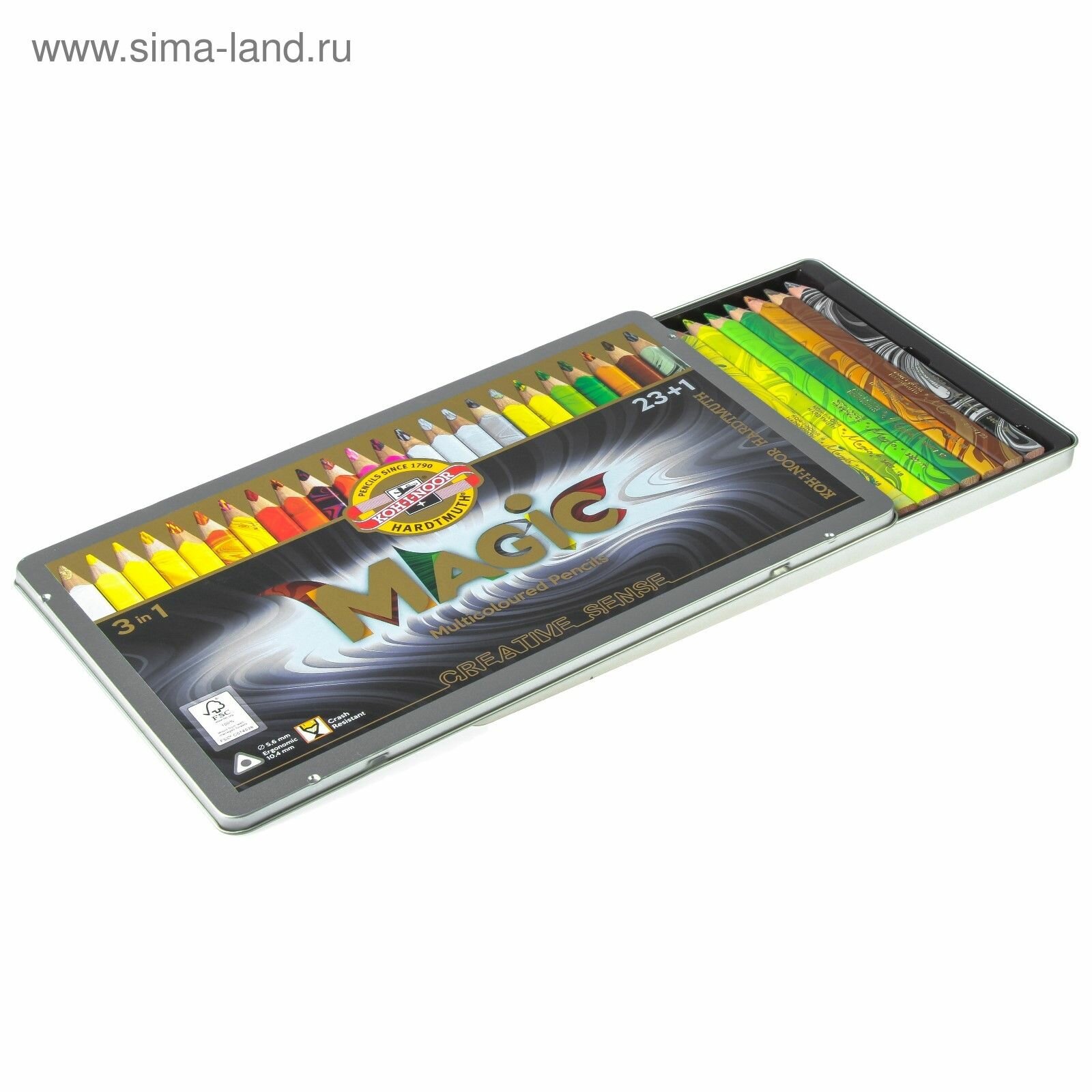 Карандаши 24 цвета ТероПром 4157808 Koh-I-Noor 3408 Magic + карандаш-блендер, в металлическом пенале