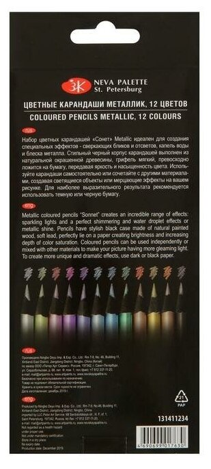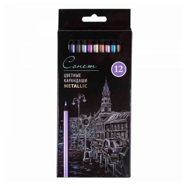 Купить Завод художественных красок «Невская палитра» Карандаши художественные цветные, ЗХК "Сонет", Metallic, 12 цветов, металлик, для темной бумаги
