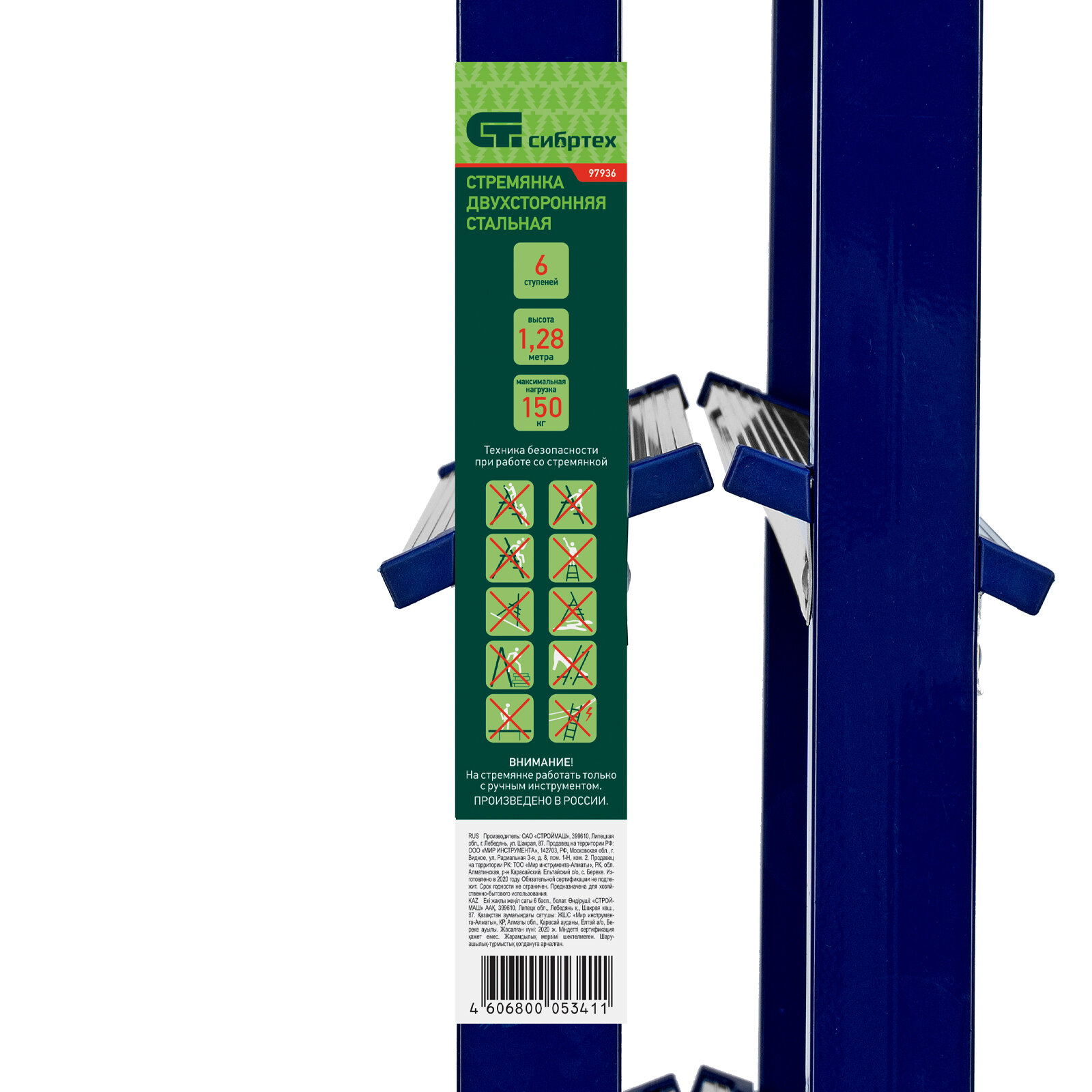 Стремянка двусторонняя 6 ступеней, стальная, Россия, Сибртех 97936