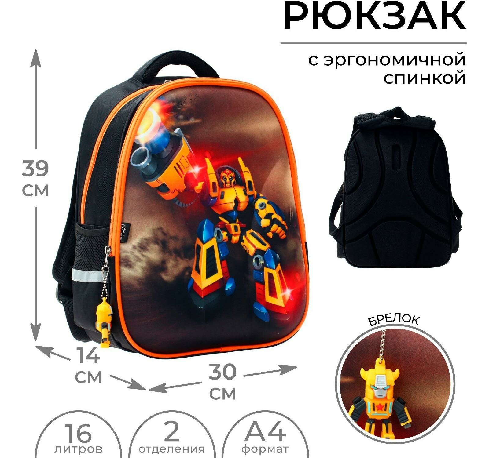 Рюкзак каркасный школьный "Робот" + брелок, 39 х 30 х 14 см