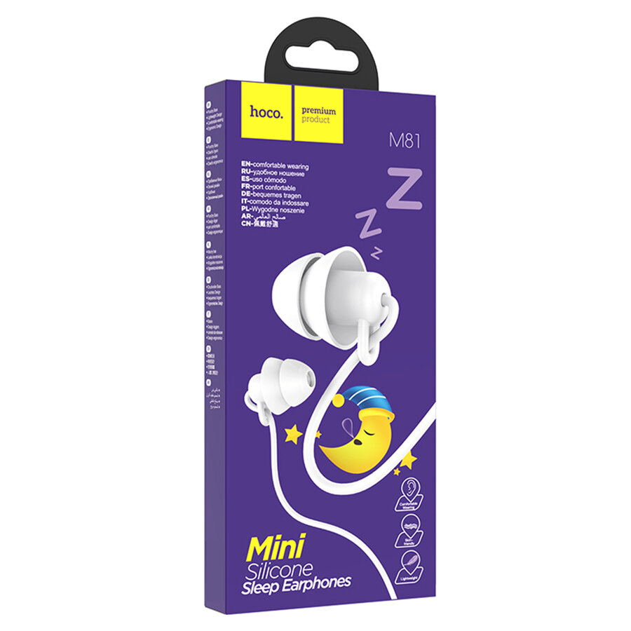 Наушники проводные HOCO M81 Mini Silicone Sleep, Jack 3.5mm с микрофоном, 1.2 м, Белый