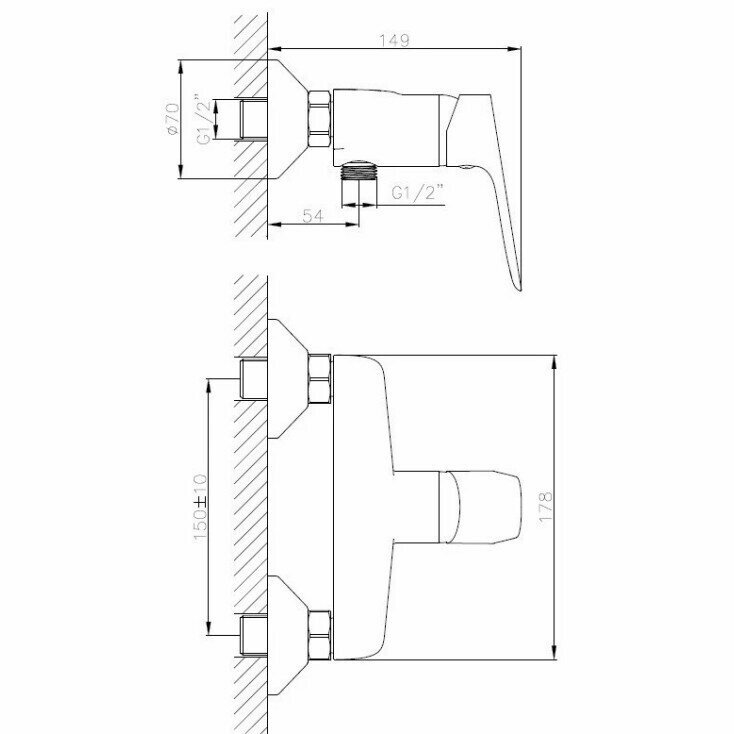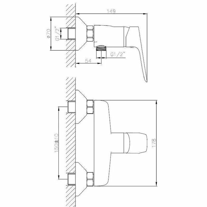 Смеситель для душа ESKO Delhi DL 80 настенный, однозахватный, без излива, цвет: хром
