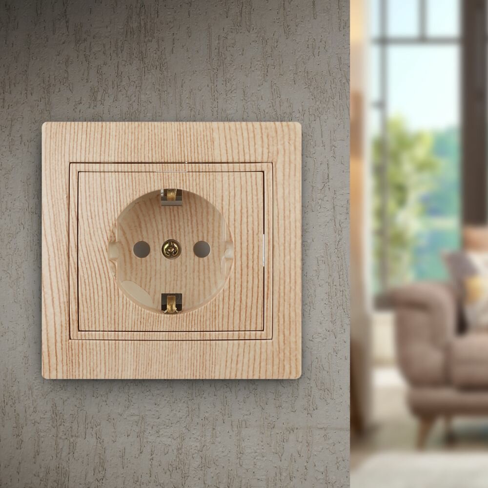 Intro Розетка 2P+E Schuko со шторками, 16А-250В, IP20, СУ, Plano, сосна Б0030077 интересное: