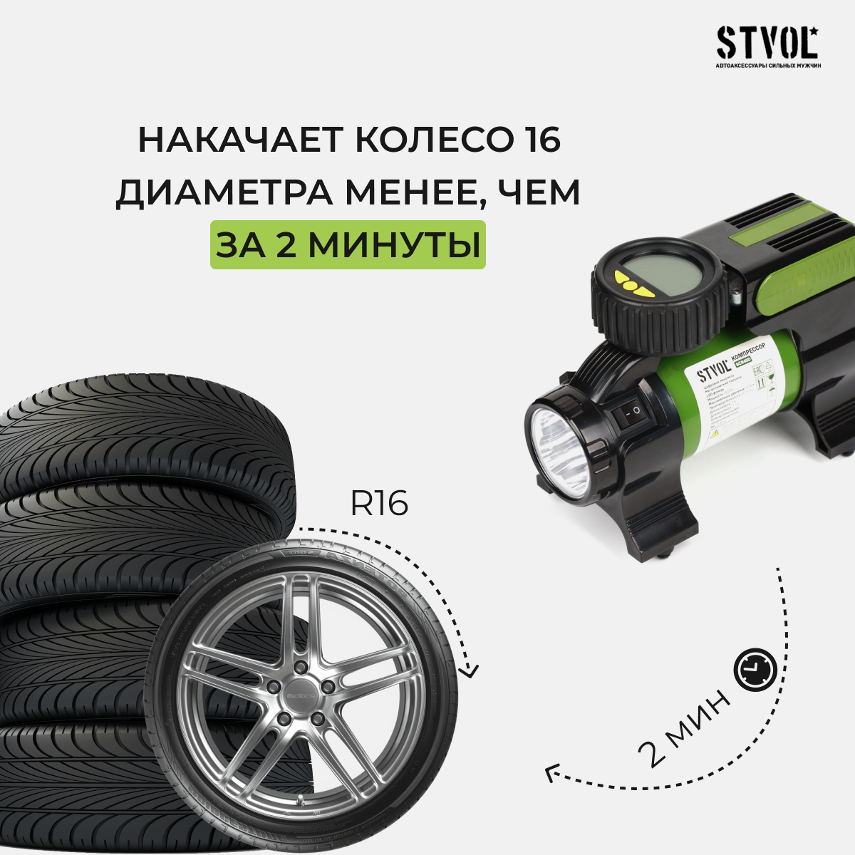 Купить Компрессор автомобильный STVOL SCR45D, 45 л/мин, с фонарём и цифровым манометром