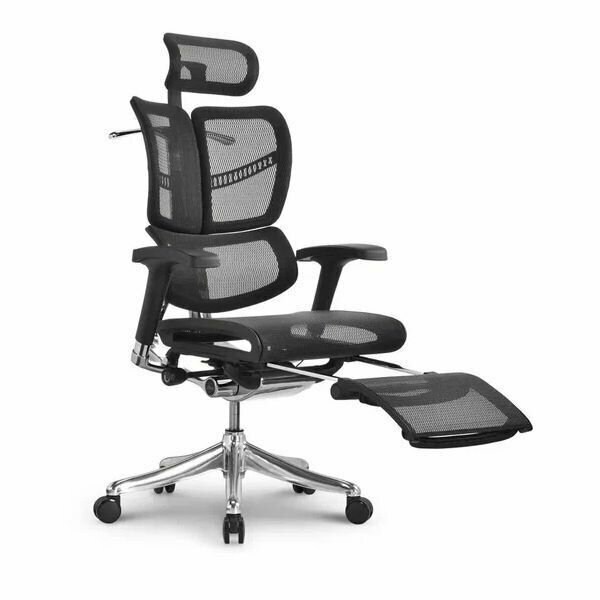 Эргономичное кресло руководителя Falto Expert 2 FLY с подножкой, сетка серая / каркас белая скала / хром
