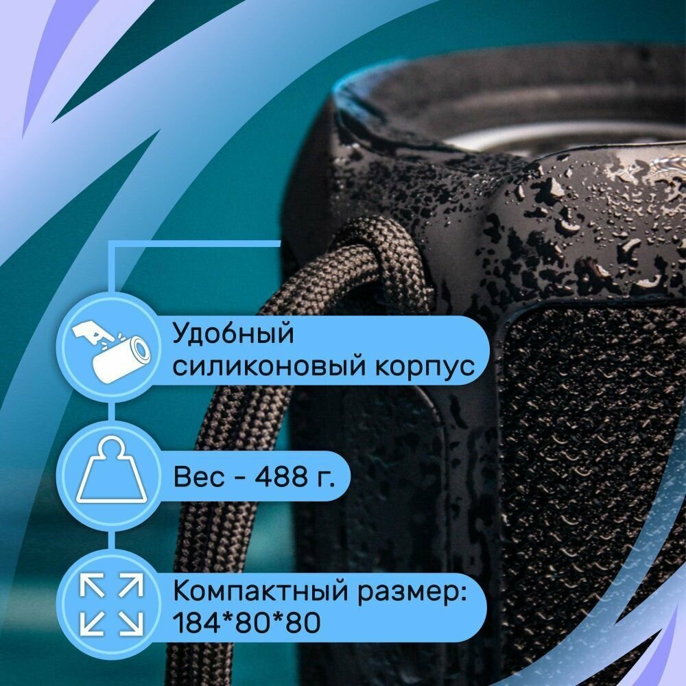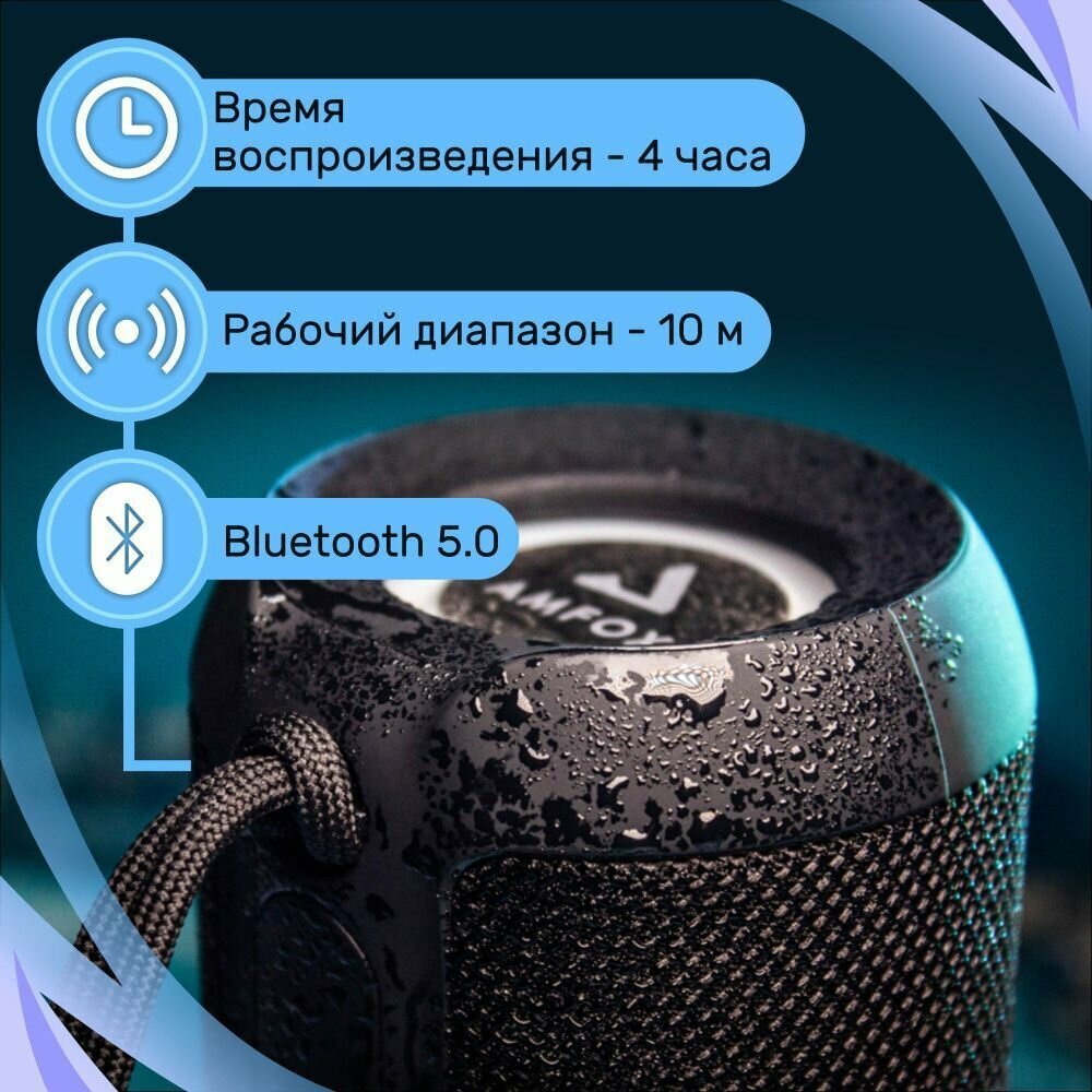 Влагозащитная портативная колонка bluetooth 5.0, AMFOX, ASP-777, 2 динамика по 5Вт, как jbl акустика с подсветкой, xiaomi, черная