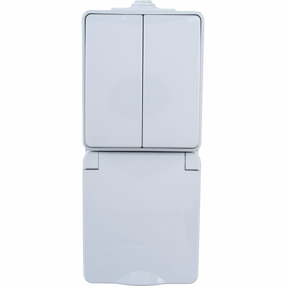 Купить Блок розетка-выключатель двухклавишный Эра Эксперт IP65 16A 250V 11-7608-03 Б0035999